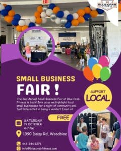 Join National Chiropractic & Sports Rehabilitation for a fun small business event at Blue Crab Fitness. There will be a variety of vendors varying from baked goods, fresh produce, early learning, and healthcare, there is something at this fair for all. Get out and support a local small business and win some cool prizes!